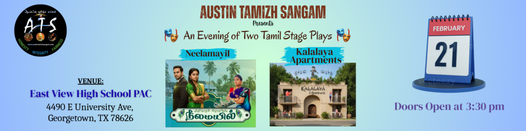 Austin Tamizh Sangam > Events > Events – ATS – Evening of Two Tamil Stage Plays – by Kalalaya Productions