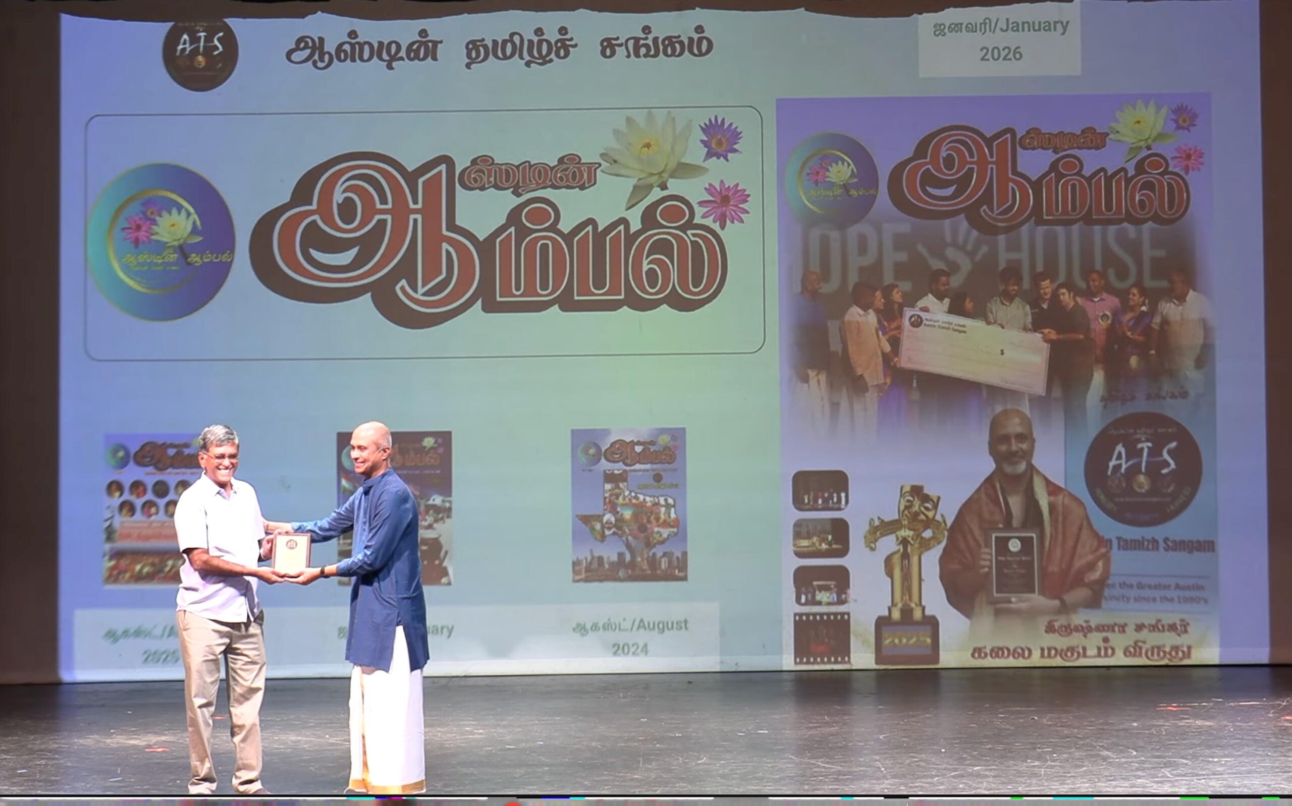The dance performances and live violin segments added tremendous depth and texture to the productions and were wholeheartedly appreciated by the audience. The auditorium resonated not only with laughter and applause but also with a wide spectrum of emotions, as the dramas captivated viewers across all age groups. The Producer, Writer, and Director of these plays, Mr. Krishna Sankar, was honored by ATS for bringing such meaningful productions to the community, keeping Tamizh drama alive, and carrying it forward to the next generation by engaging audiences of all ages. The cast, sound, lighting, and overall production were flawless — every member of the team did an outstanding job.